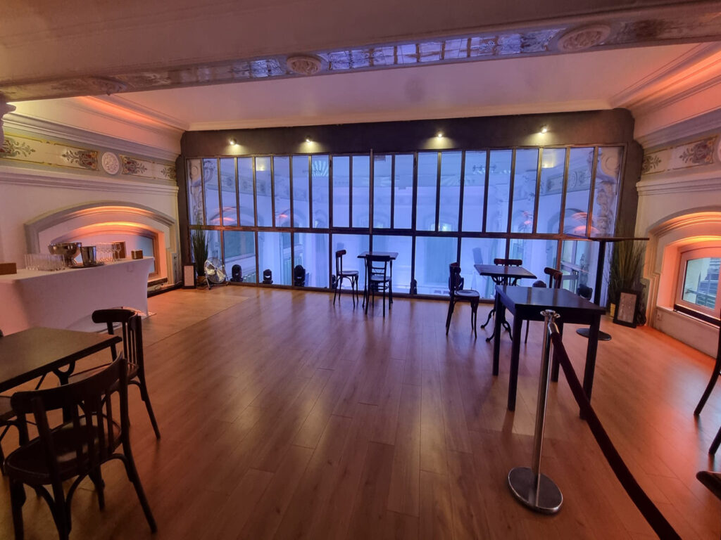 - Mobilier : 190 chaises, 10 mange-debout, 10 tables, bar avec assises
